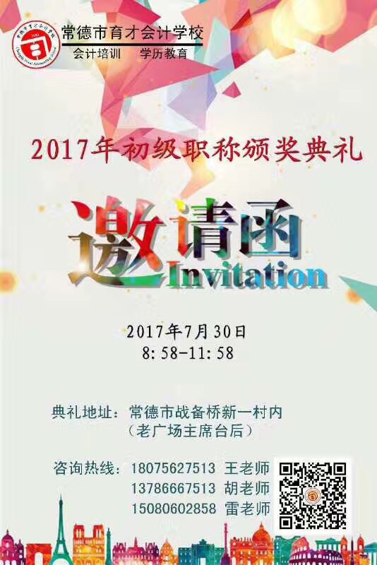 在育才会计学校举行2017年初级职称颁奖典礼,期待您的到来!